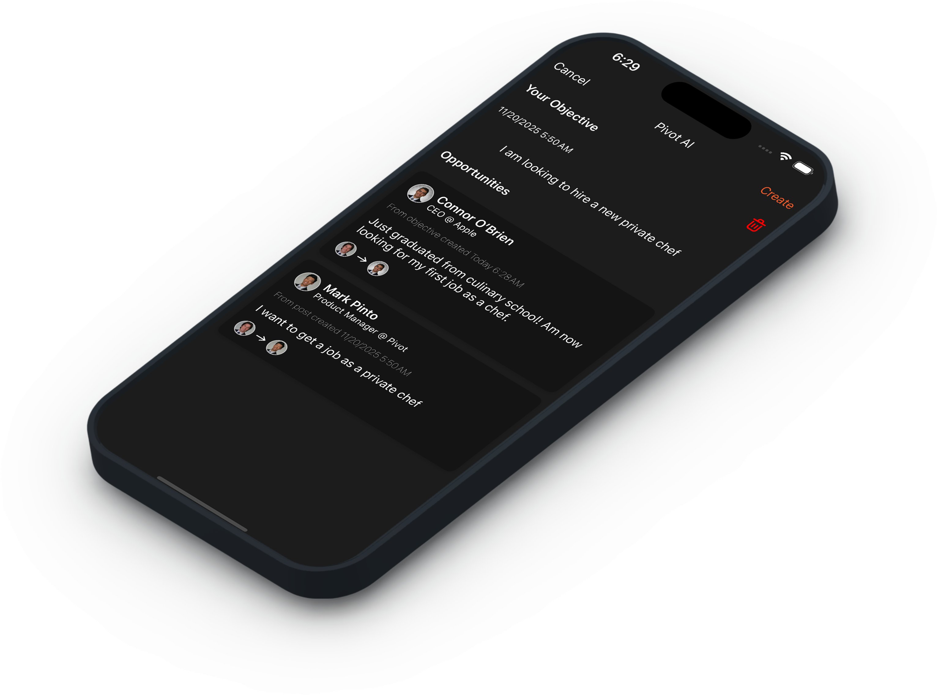 At Pivot, we believe in the power of connections. Our dedicated team is committed to helping you expand your network and build meaningful relationships.